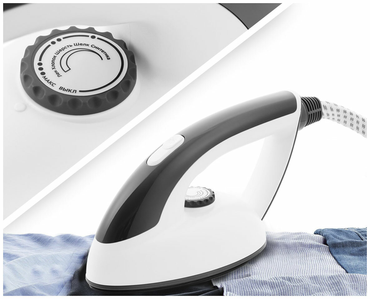 | Плюсы: | Сильный напор пара, лёгкая конструкция, наличие гладильной доски. |