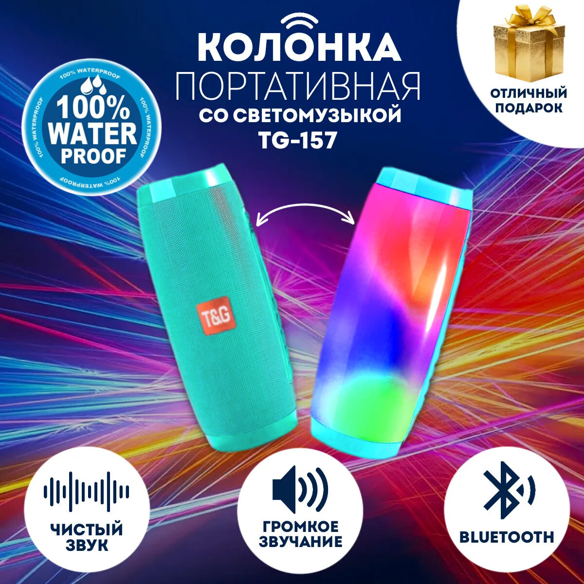 Беспроводная Bluetooth колонка с подсветкой T&G-157