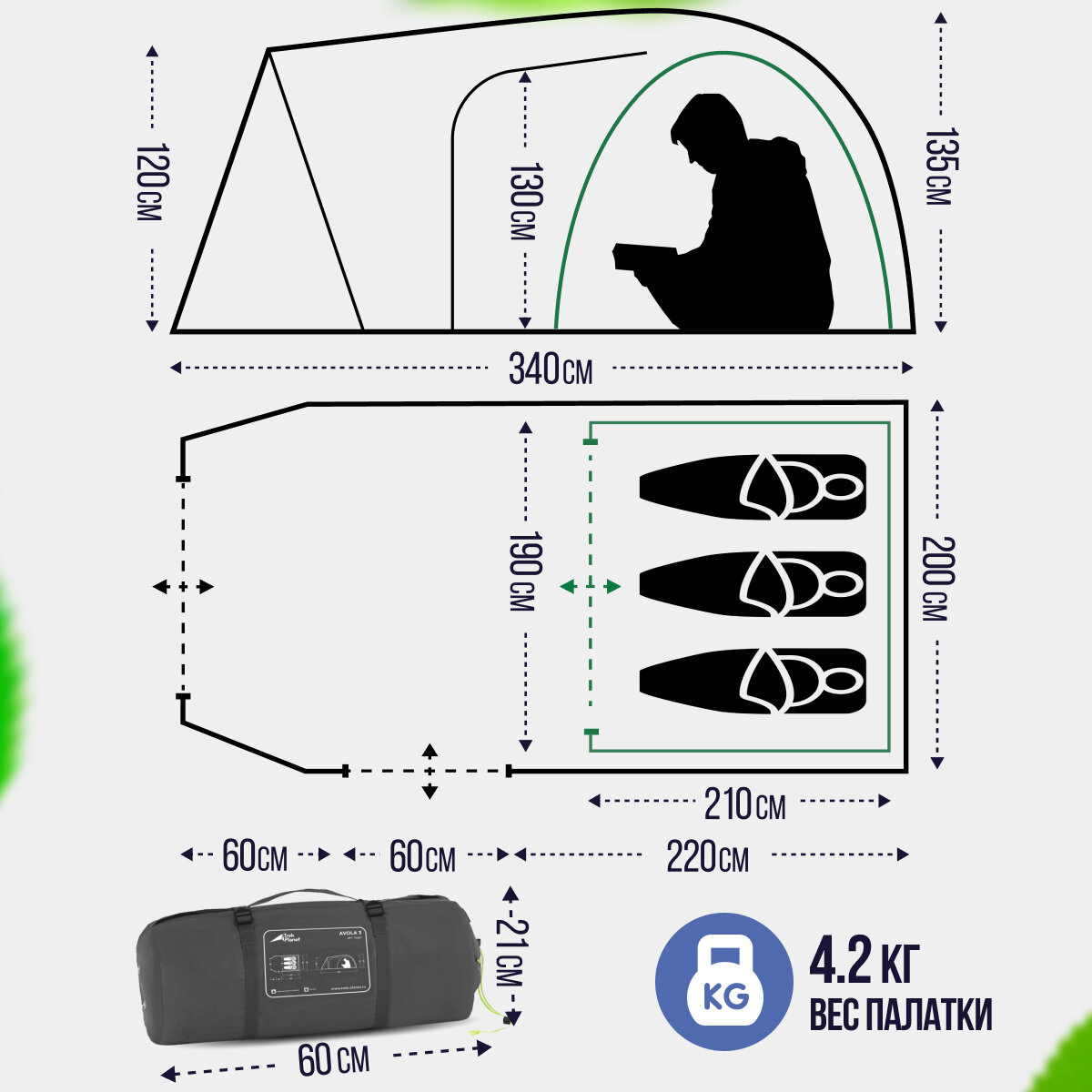 Ниже Вы можете прочитать отзывы на Палатка трехместная TREK PLANET Avola 3, цвет: зеленый, ознакомится с подробными характеристиками, посмотреть интересные обзоры и фотографии на Палатка трехместная TREK PLANET Avola 3, цвет: зеленый.