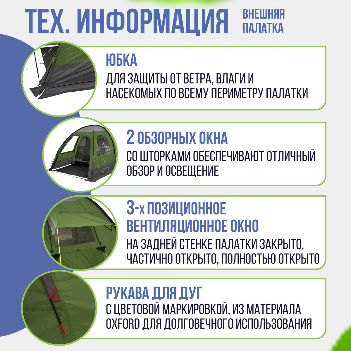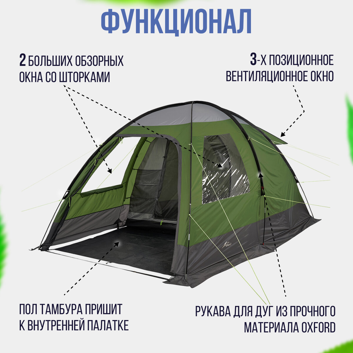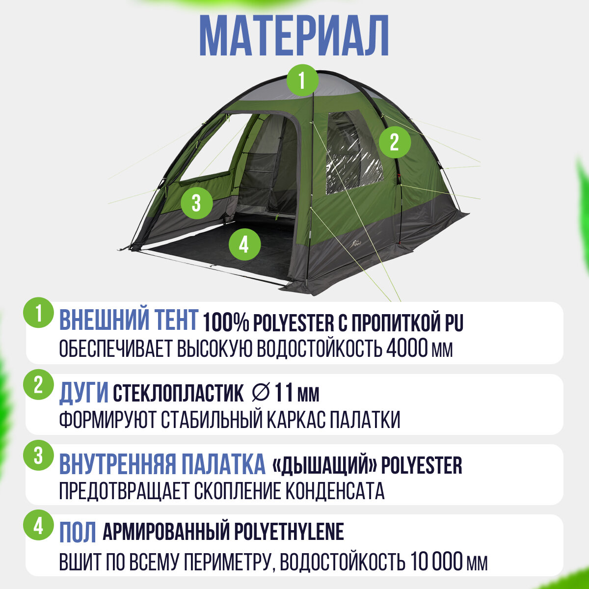 Палатка TREK PLANET Verona 4 зеленый интересное: