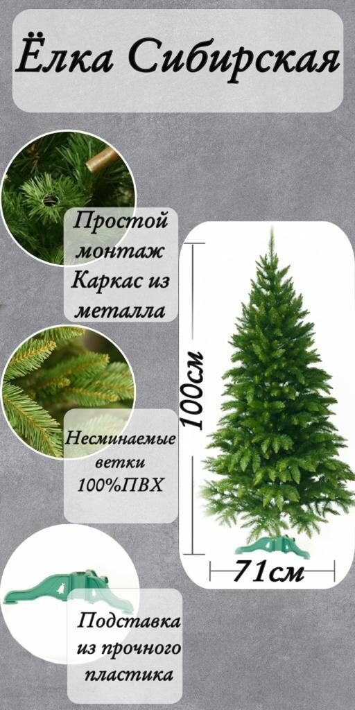 Елка искусственная Сибирская 1 м ПВХ, зеленая