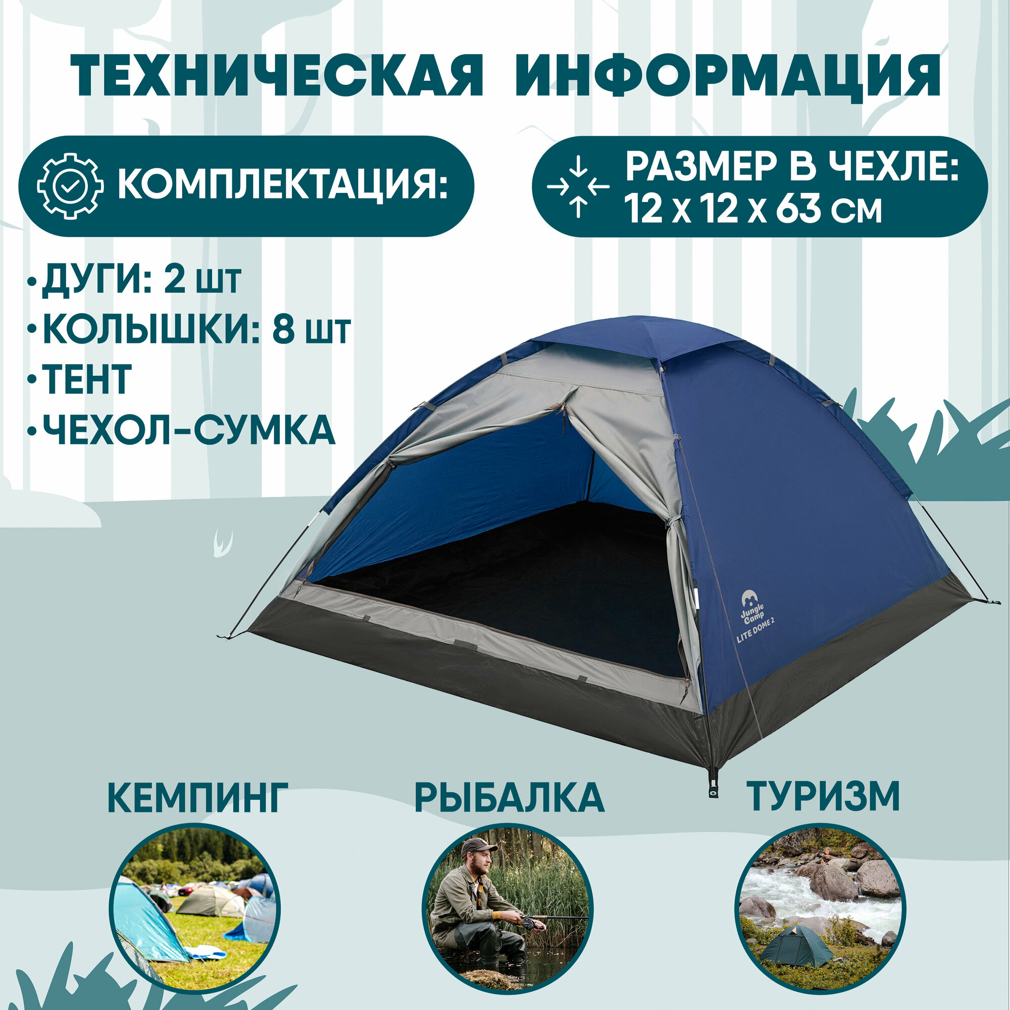 СохранитьПалатка четырёхместная JUNGLE CAMP Lite Dome 4, цвет: синий/серый интересное: