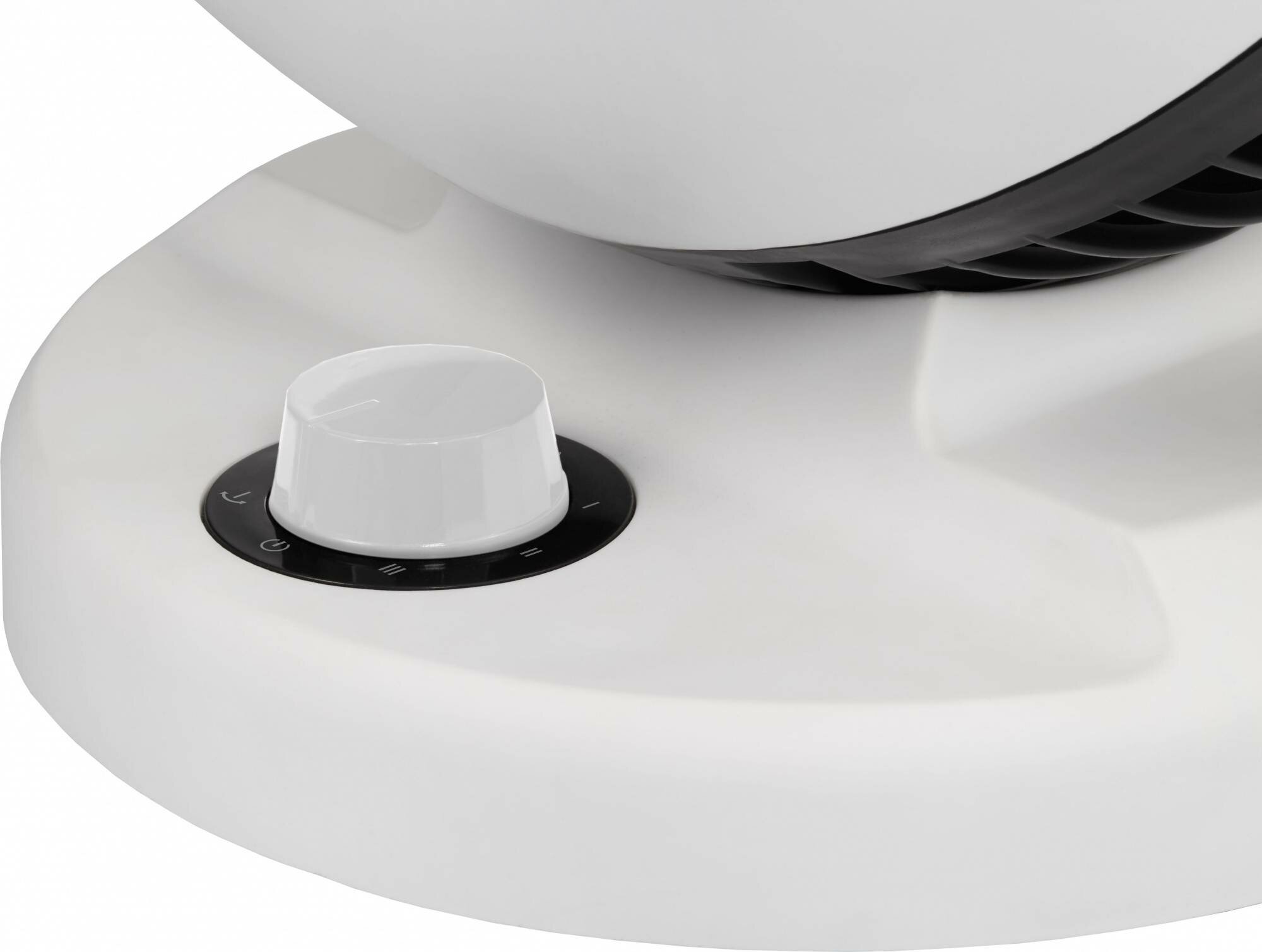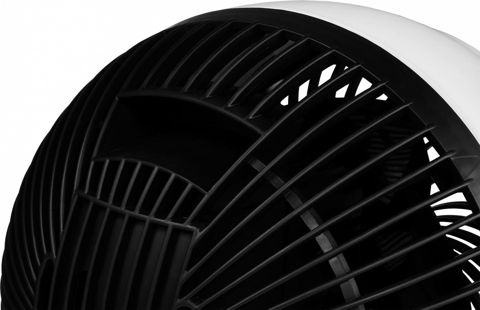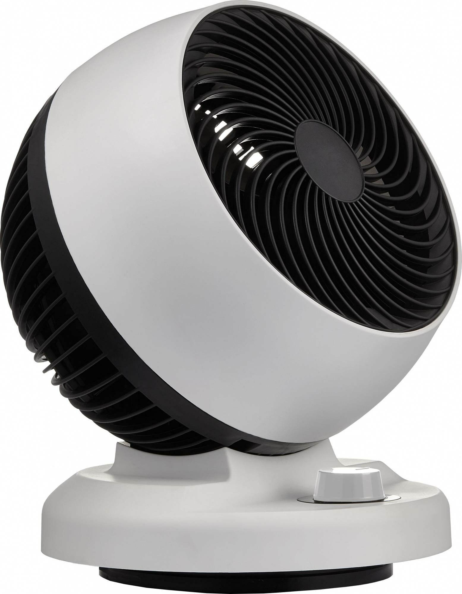 Много режимов. Плавный наклон, без щелчков. Дует мягко. Очень тихий. Размер немного больше баскетбольного мяча. |