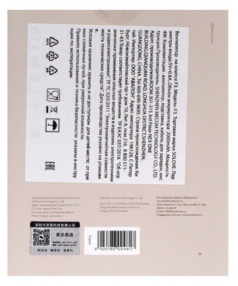 Ниже Вы можете прочитать отзывы на Портативный вентилятор на клипсе SOLOVE clip electric fan 2000mAh 3 Speed Type-C (F3 Grey), серый, ознакомится с подробными характеристиками, посмотреть интересные обзоры и фотографии на Портативный вентилятор на клипсе SOLOVE clip electric fan 2000mAh 3 Speed Type-C (F3 Grey), серый.