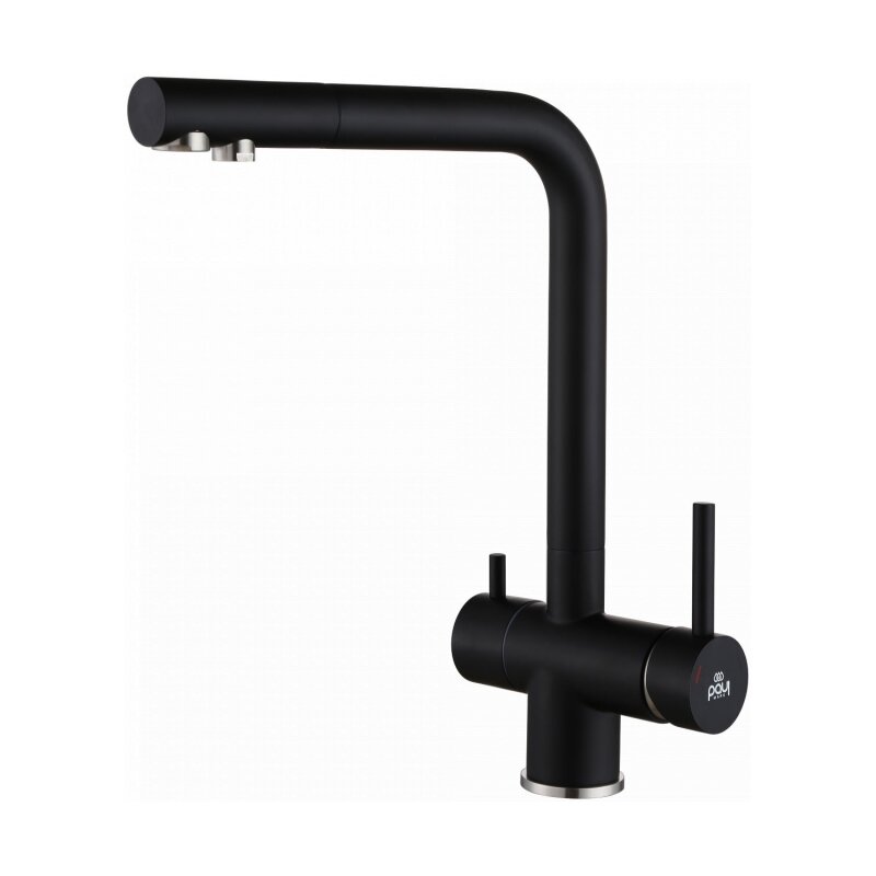 Смеситель Paulmark Skalen Sk213020-418 для кухонной мойки, черный металлик с питьевой водой