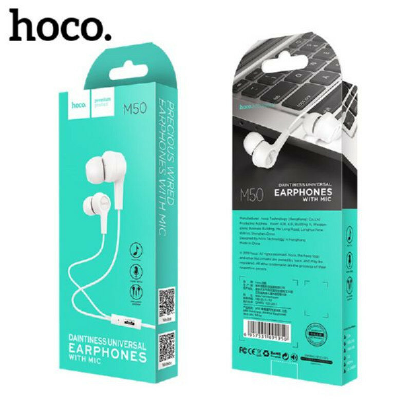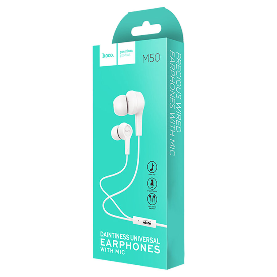 Наушники M50 Daintiness Universal Earphone, HOCO, вакуумные с микрофоном, белые