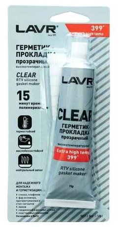 Герметик-прокладка CLEAR LAVR RTV,прозрачный,высокотемпературный,силиконовый,70г.Ln1740