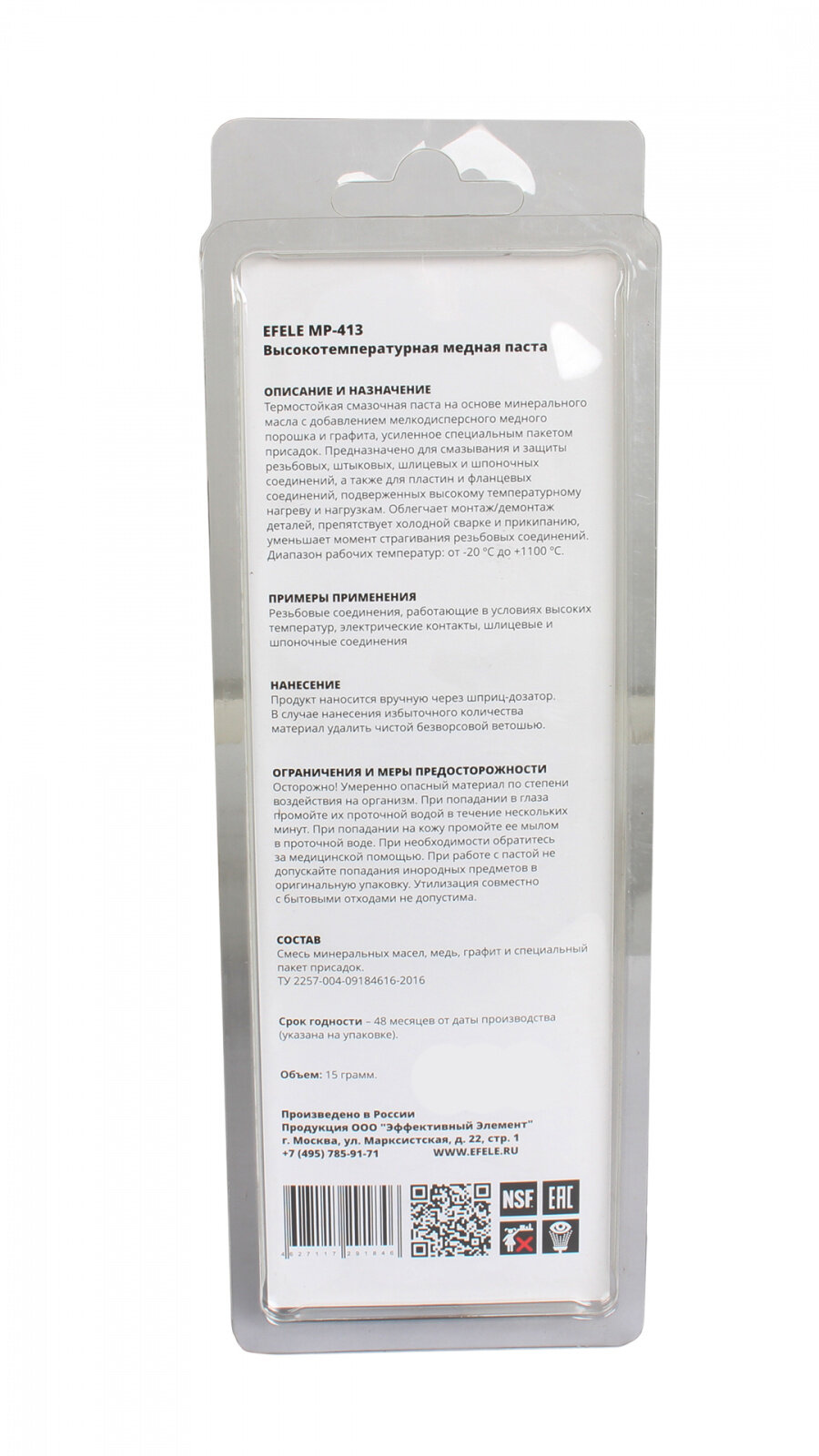 Паста медная высокотемпературная EFELE MP-413 (ПЭ дозатор, блистерная упаковка 15 грамм)