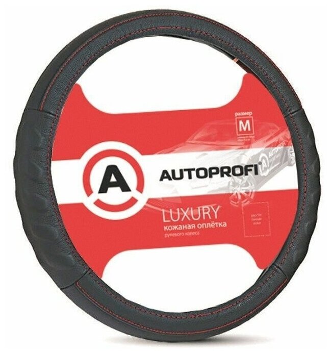 Оплётка руля Autoprofi Luxury натуральная кожа композитная черный M