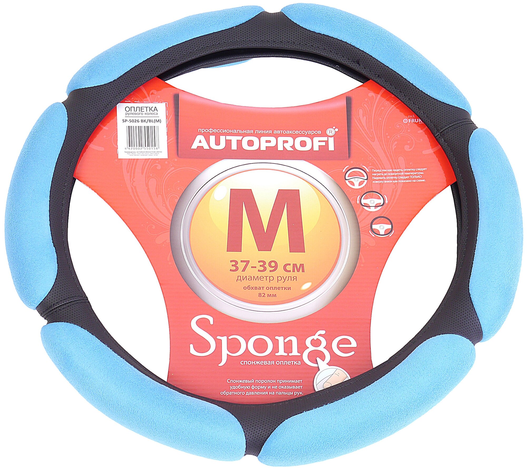 Спонжевая оплетка руля AUTOPROFI SP-5026 BK/BL (M)