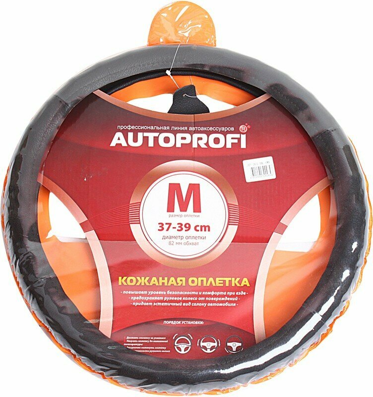 Оплетка для AUTOPROFI натуральная, ребристая кожа (M), чёрный AP-265 BK (M)