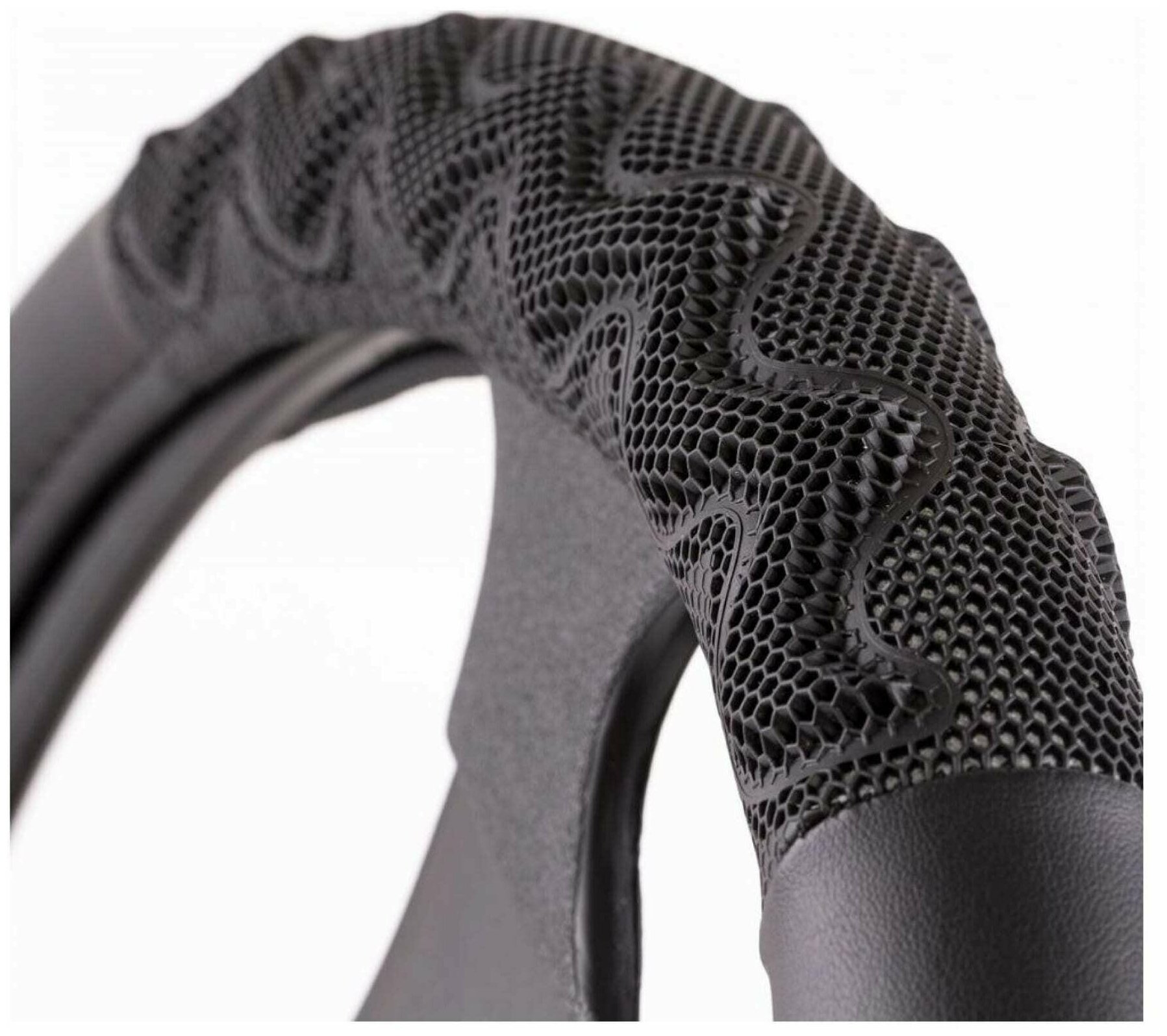Оплётка руля Autoprofi , экокожа, объмные вставки, чёрный/серый, размер М