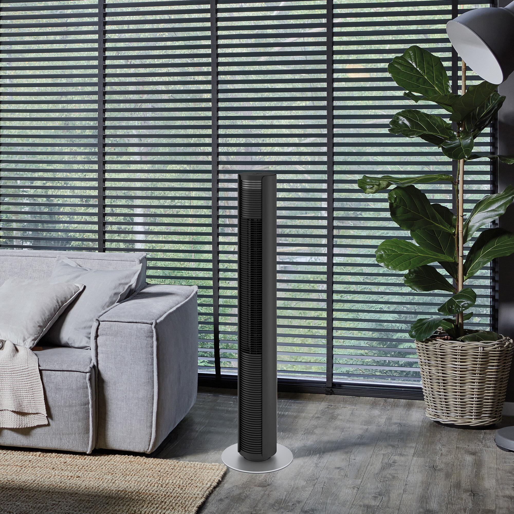 Вентилятор напольный колонный с пультом управления ДУ и таймером для дома и офиса (домашний, офисный) сенсорный, бесшумный, мощный Stadler Form Peter black Original P-013OR черный пластик, охлаждение Морской бриз