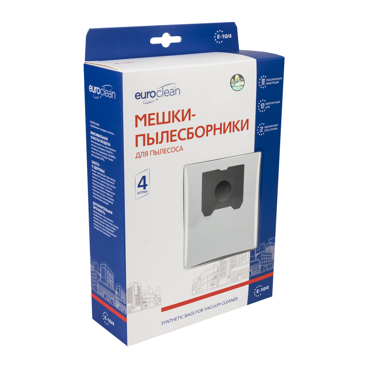 Мешки-пылесборники Euroclean E-10/4 синтетические для пылесоса, 4 шт