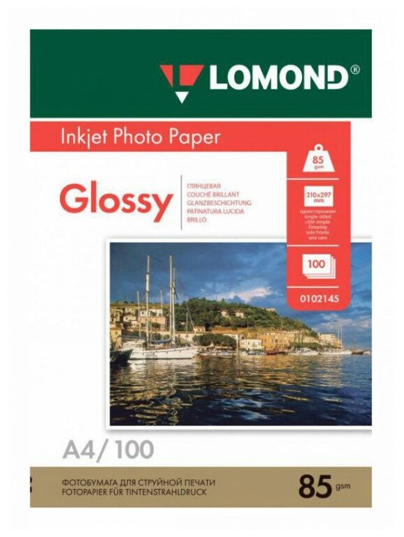 Фотобумага Lomond A4, 85г/м2, 100л, для струйной печати, белый, покрытие глянцевое [0102145]
