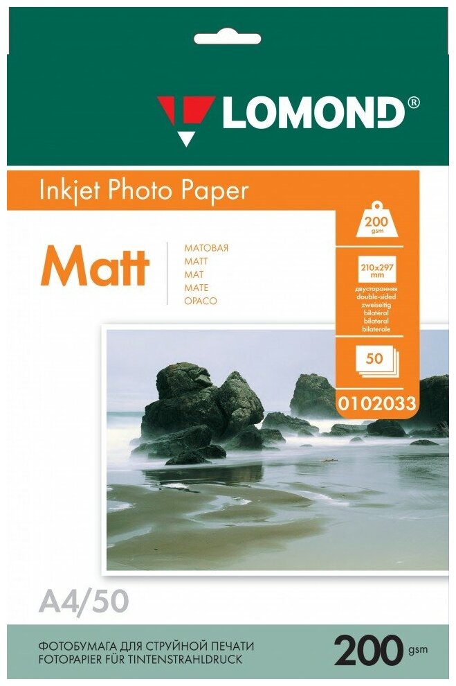 Lomond 0102033 Двусторонняя Матовая/Матовая фотобумага для струйной печати, A4, 200 г/м2, 50 листов (Lomond 0102033)