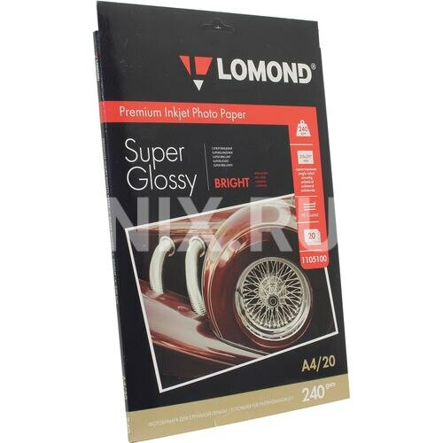 Lomond 1105100 (Super Glossy Bright)-односторонняя Суперглянцевая ярко-белая A4 240g/m, 20 лист.