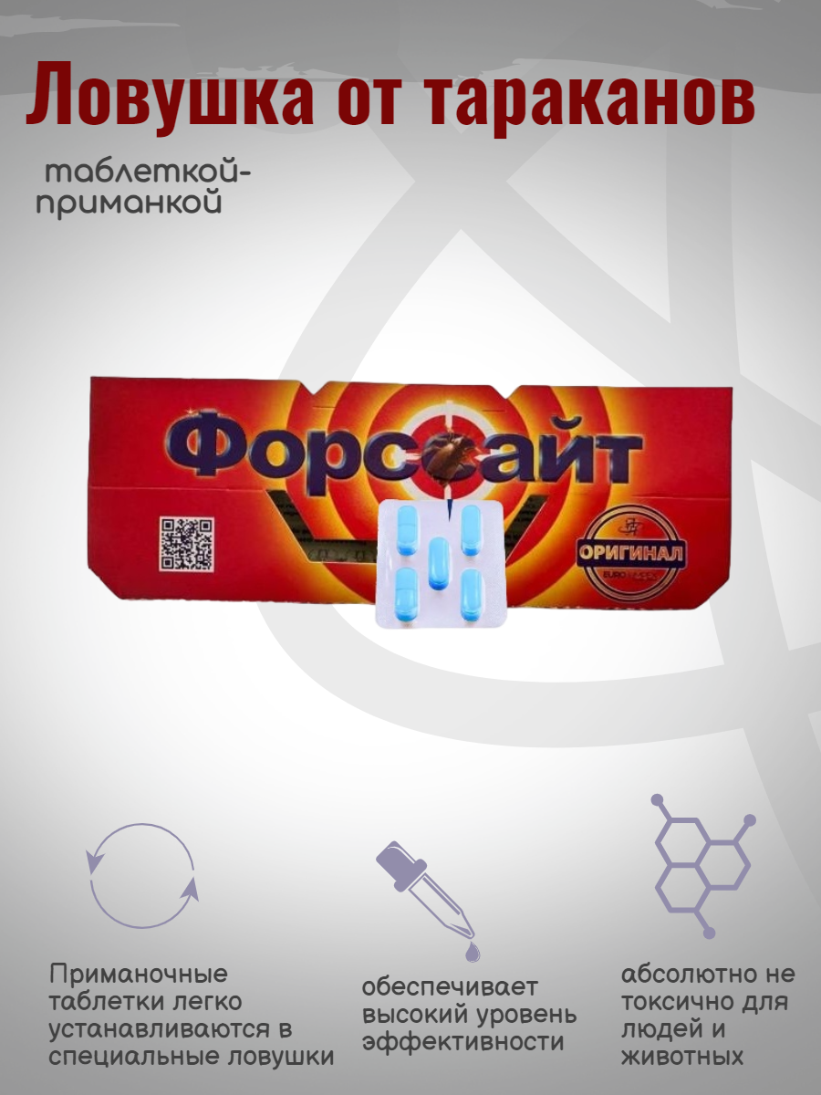 Ловушка для тараканов клеевая, Форсайт от тараканов, Форссайт, 1 упаковка, 5 таблеток