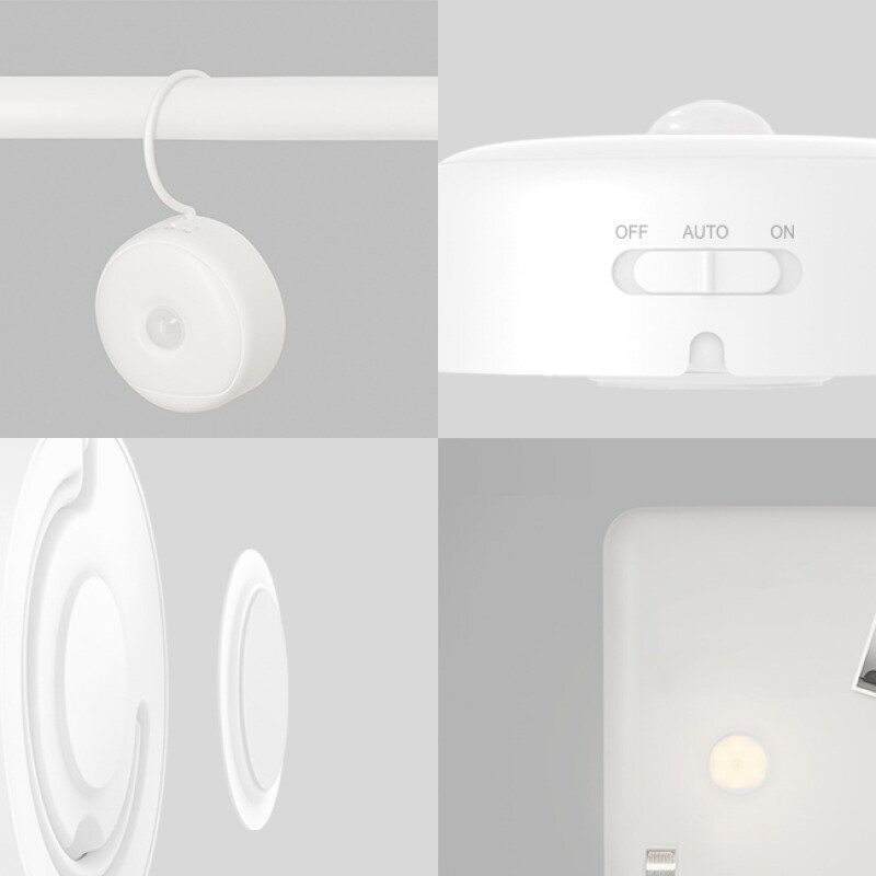 - Аккумулятора хватает на 3 месяца в режиме ночного использования. - Само по себе наличие аккумулятора с зарядкой по USB - огромный плюс в случае подобных светильников. - Три варианта крепления: крючок, магнитное крепление с двухсторонним скотчем и, собственно, сам магнит. У меня 4 таких светильника, в разных местах использую разные варианты. - Наличие режимов постоянного свечения и выключенного состояния (есть не во всех подобных) - Датчик движения срабатывает с расстояния 7 метров точно, не включается при наличии света в комнате |