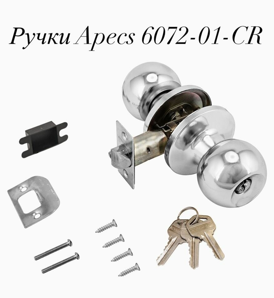 Ручка дверная Apecs 6072-01-CR, хром, латунь, ключ/фиксатор