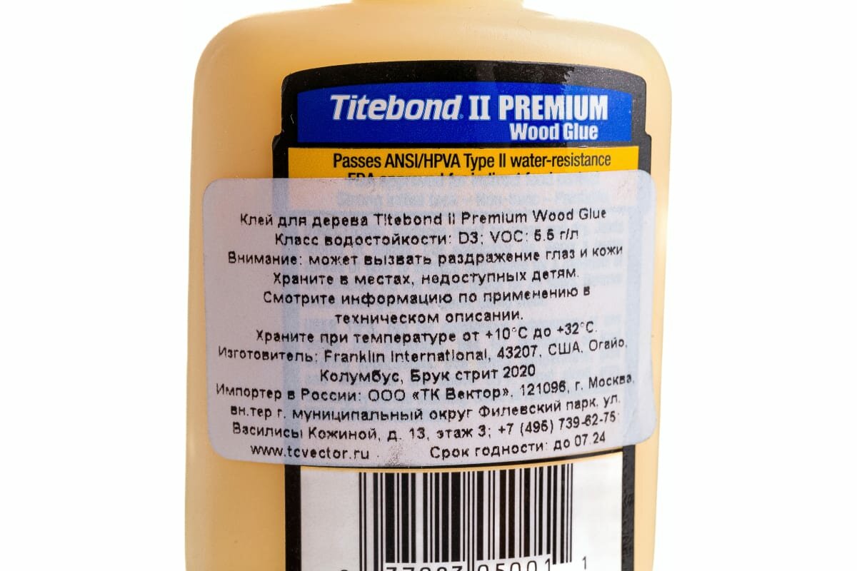 Клей для дерева TITEBOND II PREMIUM WOOD GLUE, клей ПВА влагостойкий, 473 мл, 1 шт.