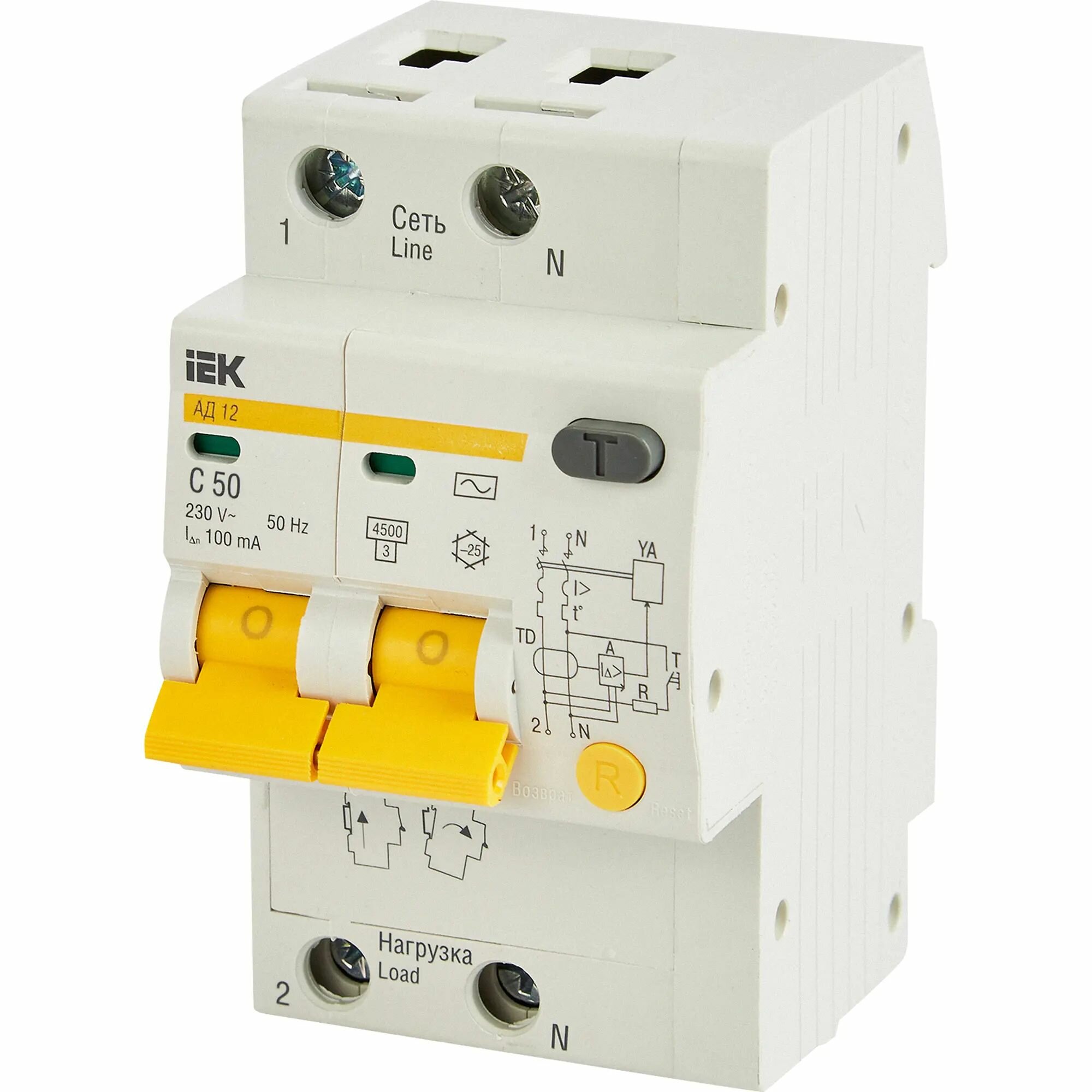 Дифференциальный автомат IEK АД12 2P C50 А 100 мА 4.5 кА AC MAD10-2-050-C-100