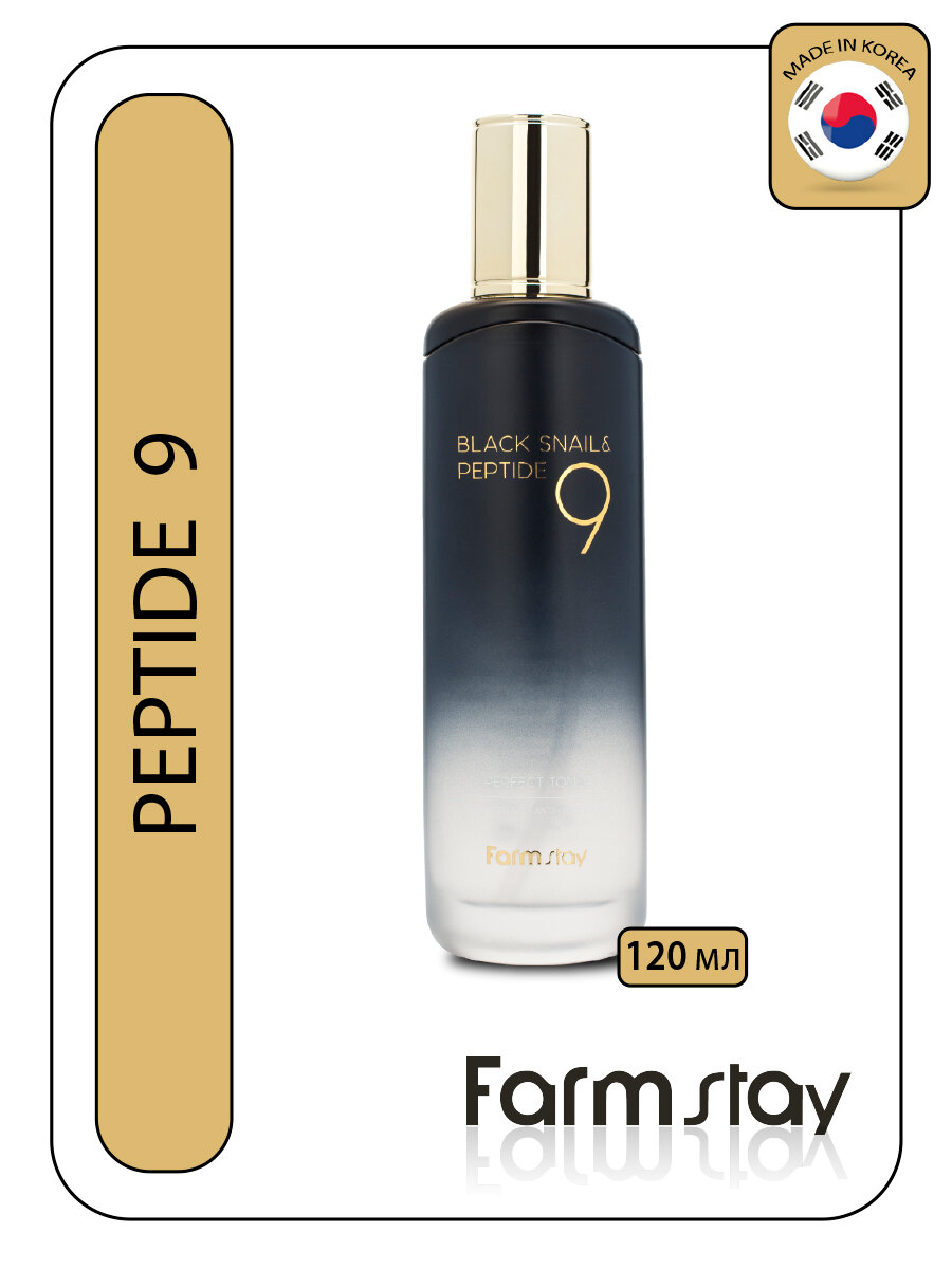 Тонер с черной улиткой и пептидами – FarmStay Black Snail & Peptide 9 Perfect Toner 120ml