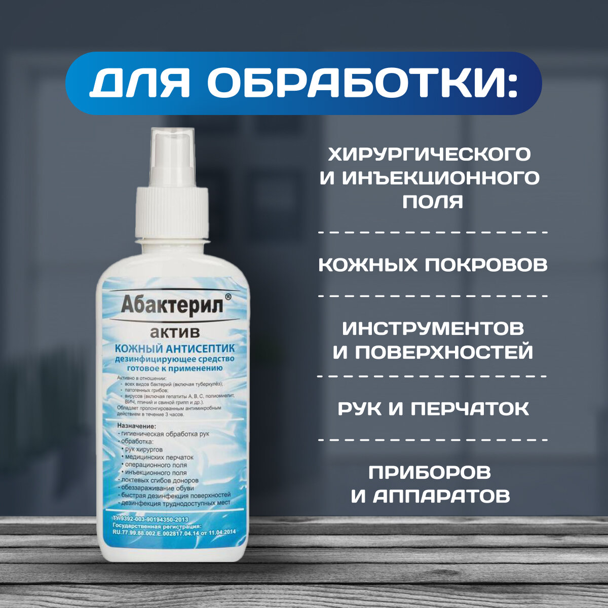 4 шт. Кожный антисептик с вирулицидной активностью ГОСТ 12.1.007-76 Абактерил-Актив 200 мл спрей