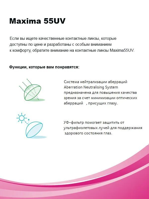 Контактные линзы Maxima 55 UV Aspheric 1 месяц D 14.2 R. 8.8 SPH +2.50