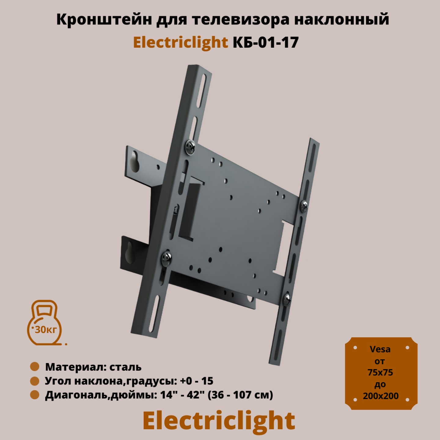 Купить Кронштейн для телевизора на стену наклонный с диагональю 14"-42" Electriclight КБ-01-17,черный