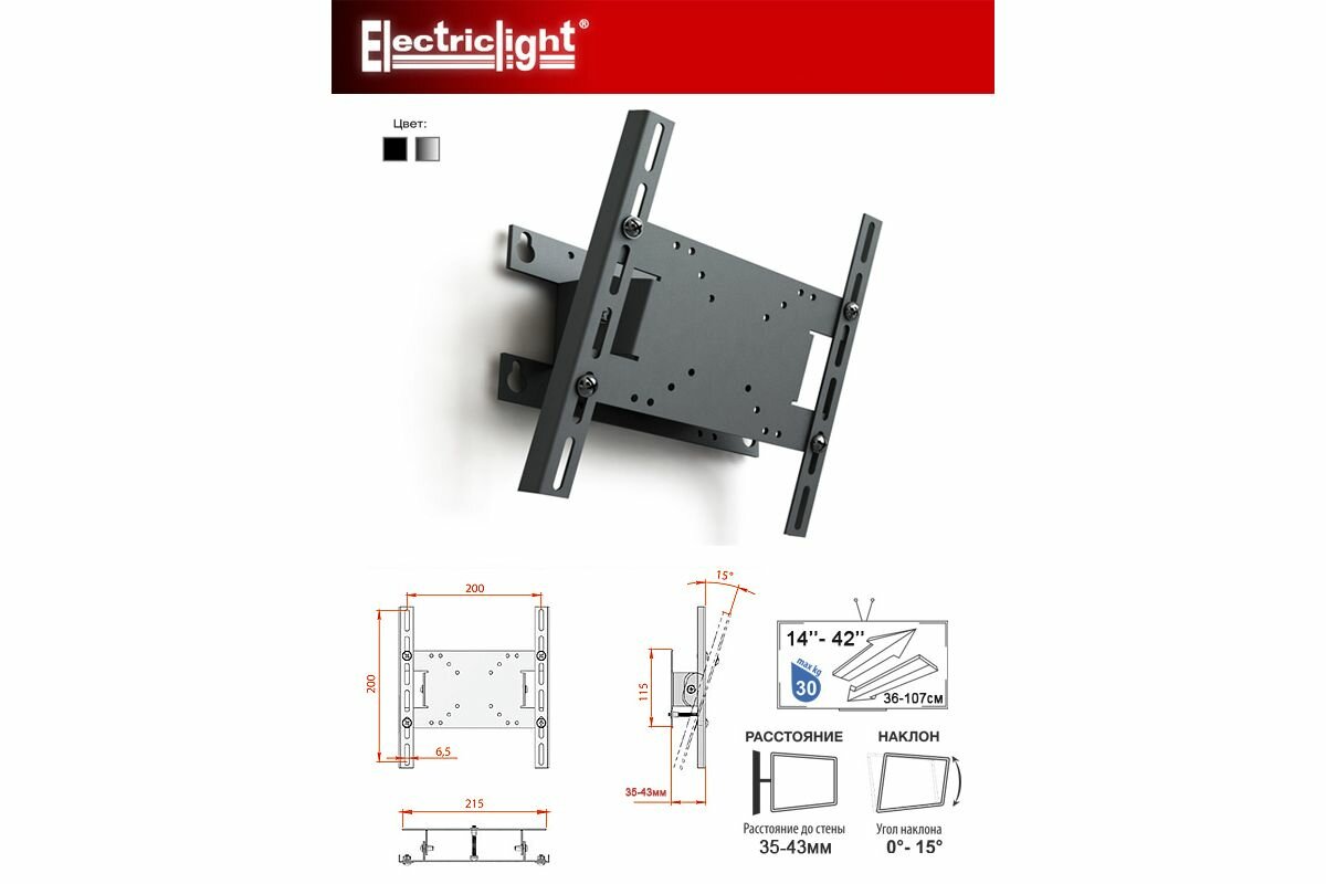 Кронштейн для ТВ ELECTRICLIGHT КБ-01-17-М металл (14"-42", до 30кг, от стены 35-43мм)