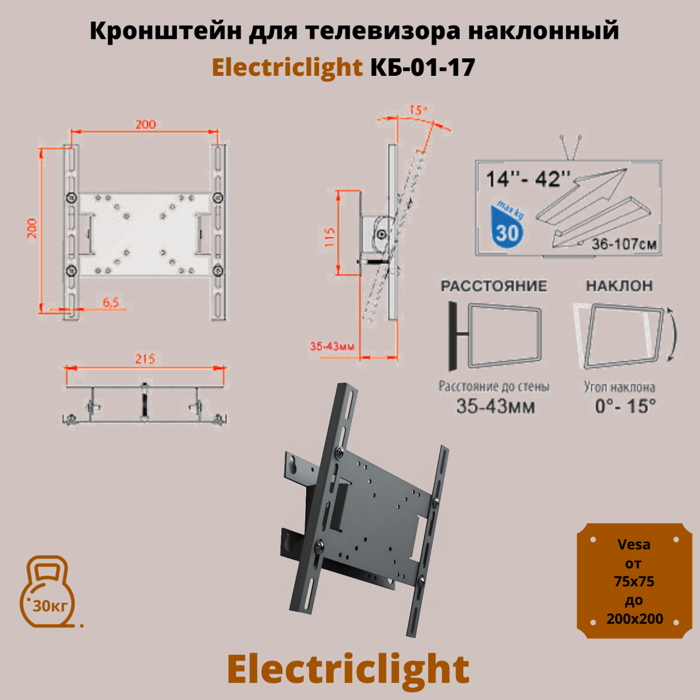 Кронштейн для телевизора на стену наклонный с диагональю 14"-42" Electriclight КБ-01-17,черный интересное:
