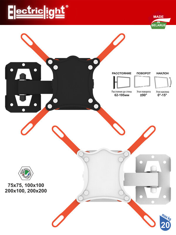 Кронштейн для телевизора Electriclight КБ-01-83 с наклоном и поворотом до 20кг 14..42 дюйма VESA до 200мм, чёрный