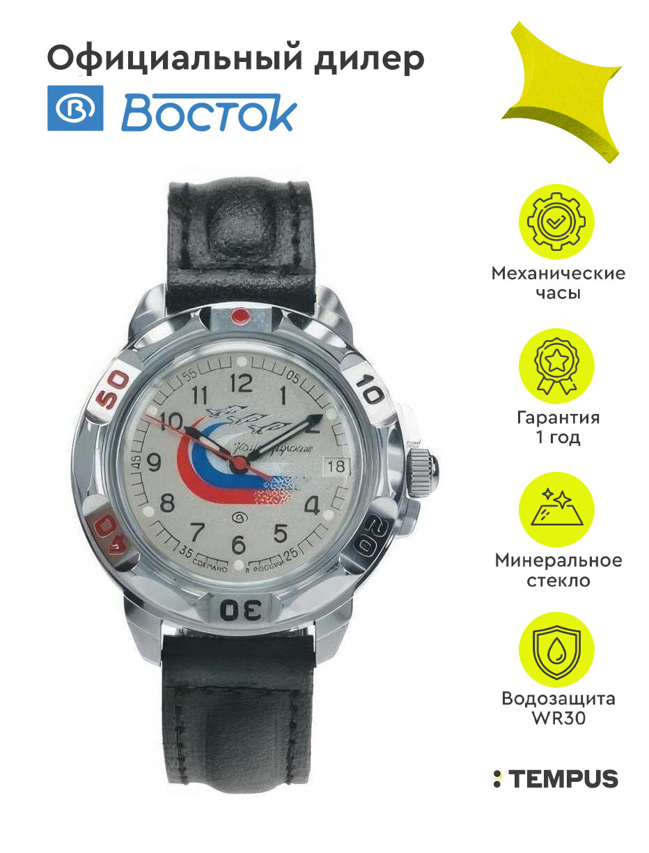 Мужские наручные часы Восток Командирские 431562-classic, натуральная кожа, черный