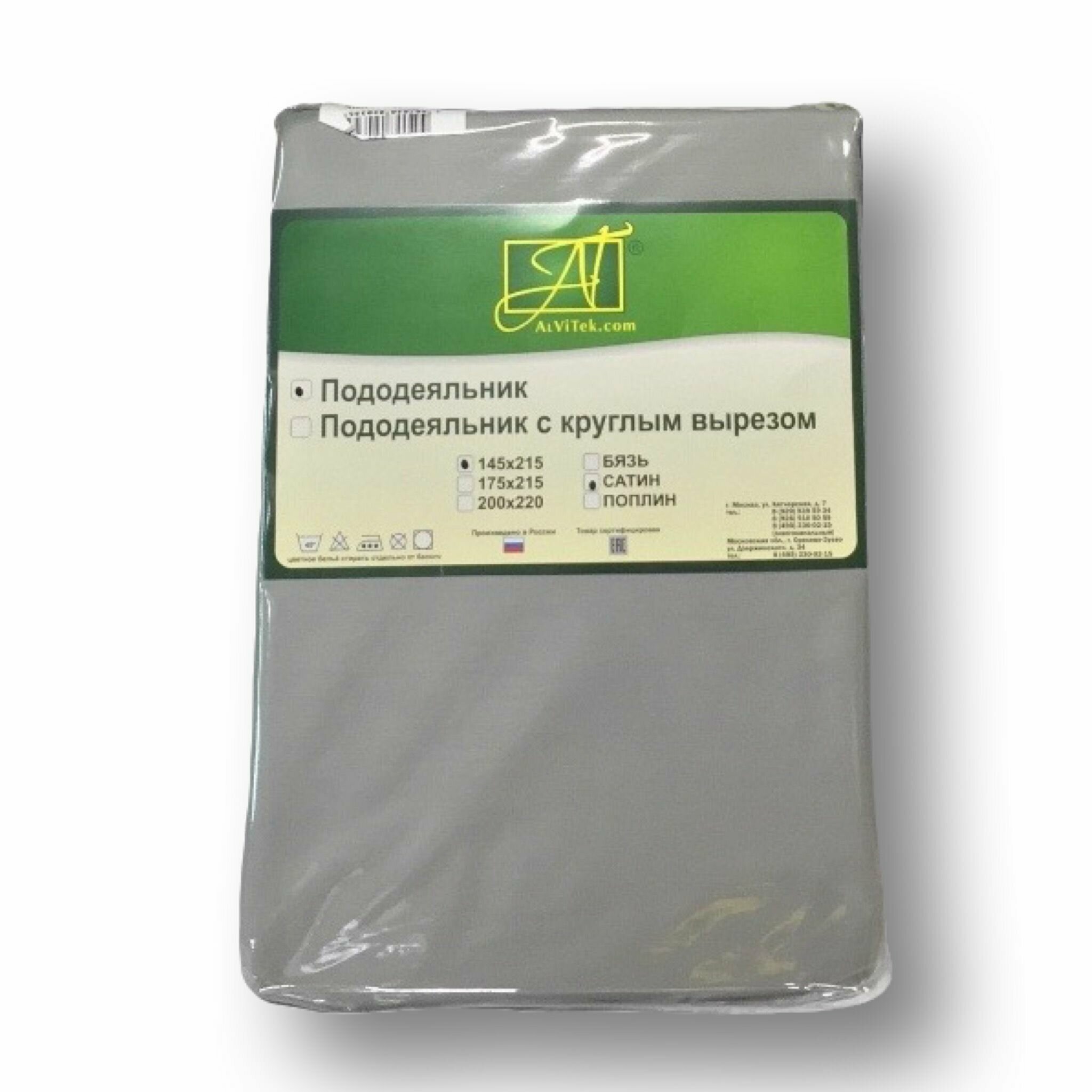 Пододеяльник AlViTek (АльВиТек) 200х220, Евро, На молнии, Сатин, 100% хлопок, Цвет серый, AALV-ПОД-СО-22-ЖСЕР