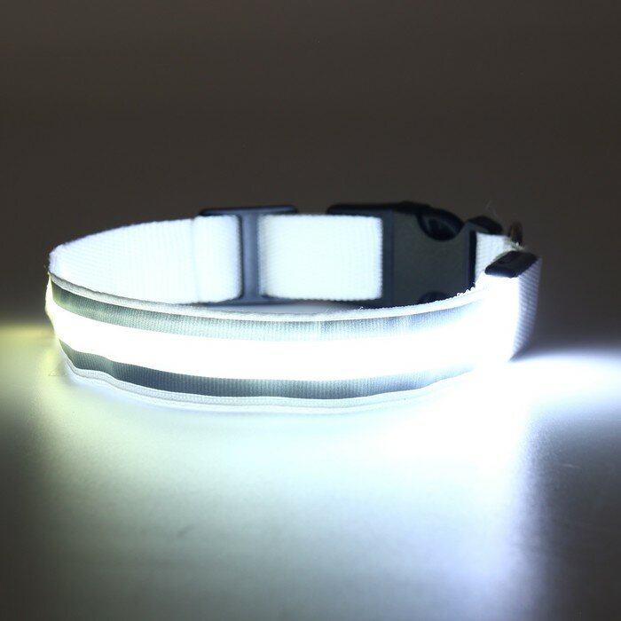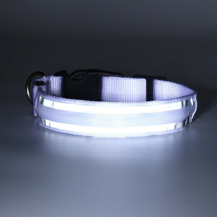 Купить Ошейник с подсветкой и светоотражающими полосами, 2,5 см, 37-45 см, 3 режима свечения, белый 7345286