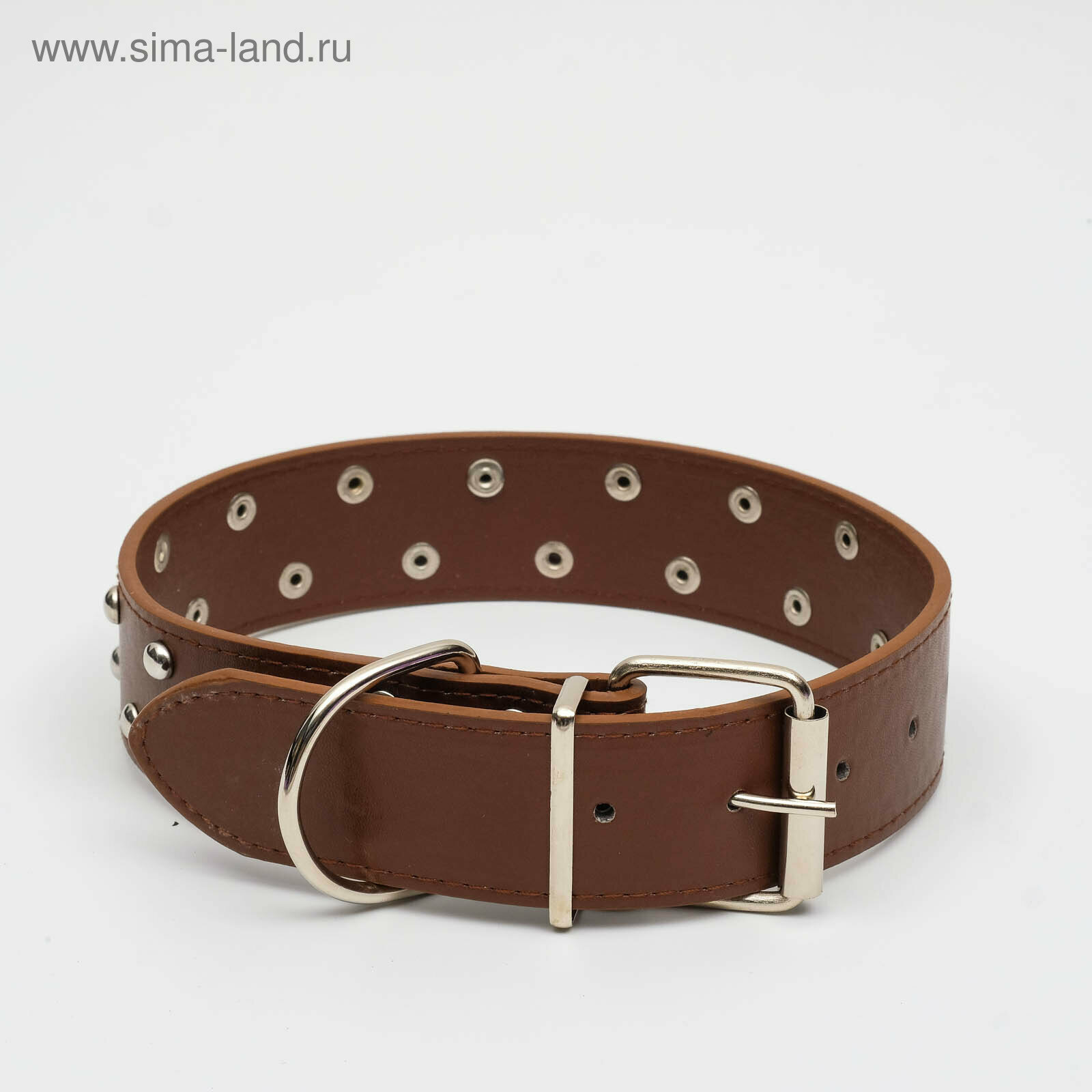 Купить Ошейник клепаный в 2 ряда, 63,5 х 3,8 см, коричневый