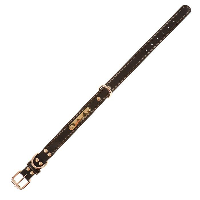 Купить Ошейник с золоченой табличкой и фурнитурой, 55 х 2,5 см, коричневый