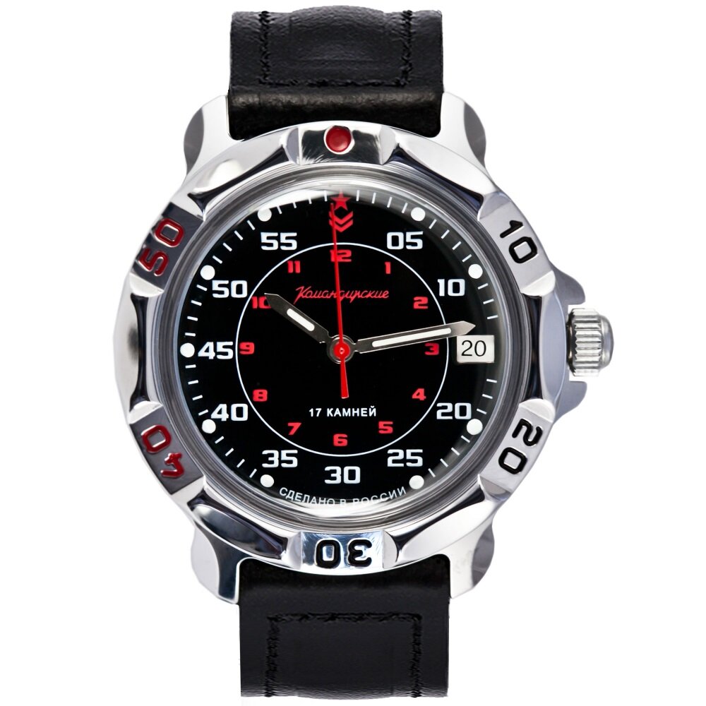 Мужские наручные часы Восток Командирские 811172-classic, натуральная кожа, черный
