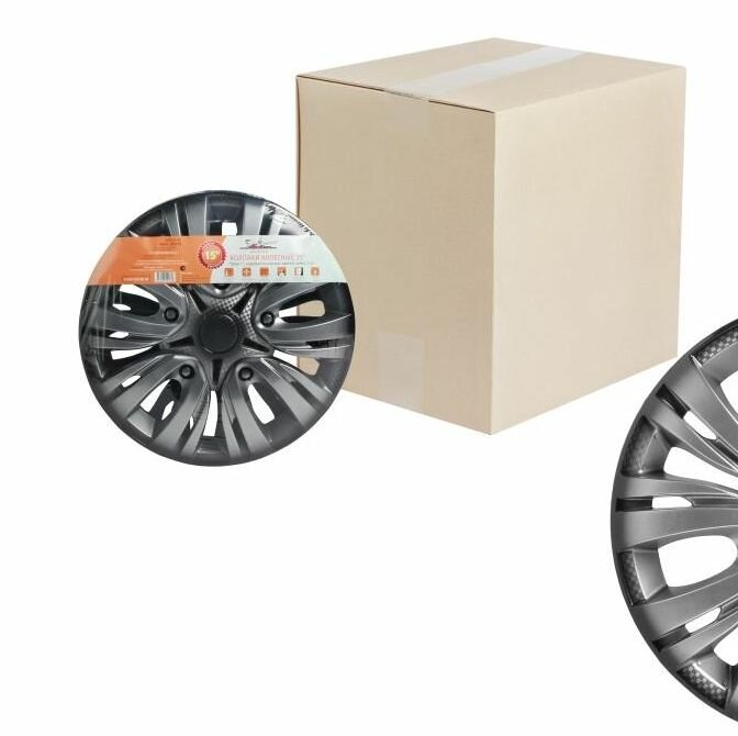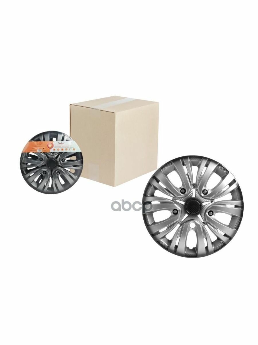 Колпаки колесные 16" "Лион +", серебристо-черный, карбон, компл. 2 шт.