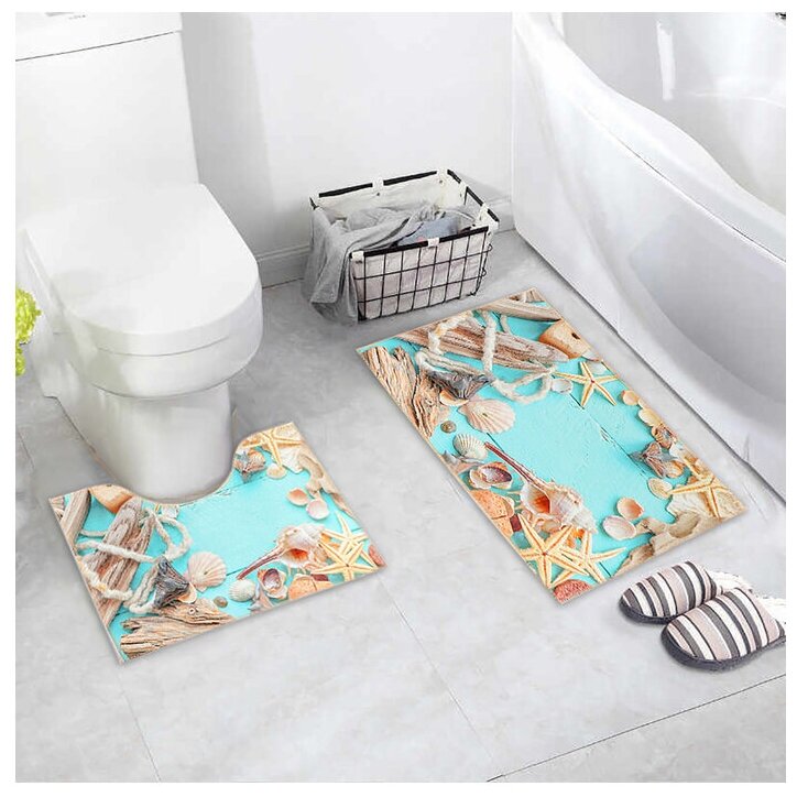 Набор ковриков для ванной и туалета Доляна Ракушки, 2 шт: 40 45, 45 75 см