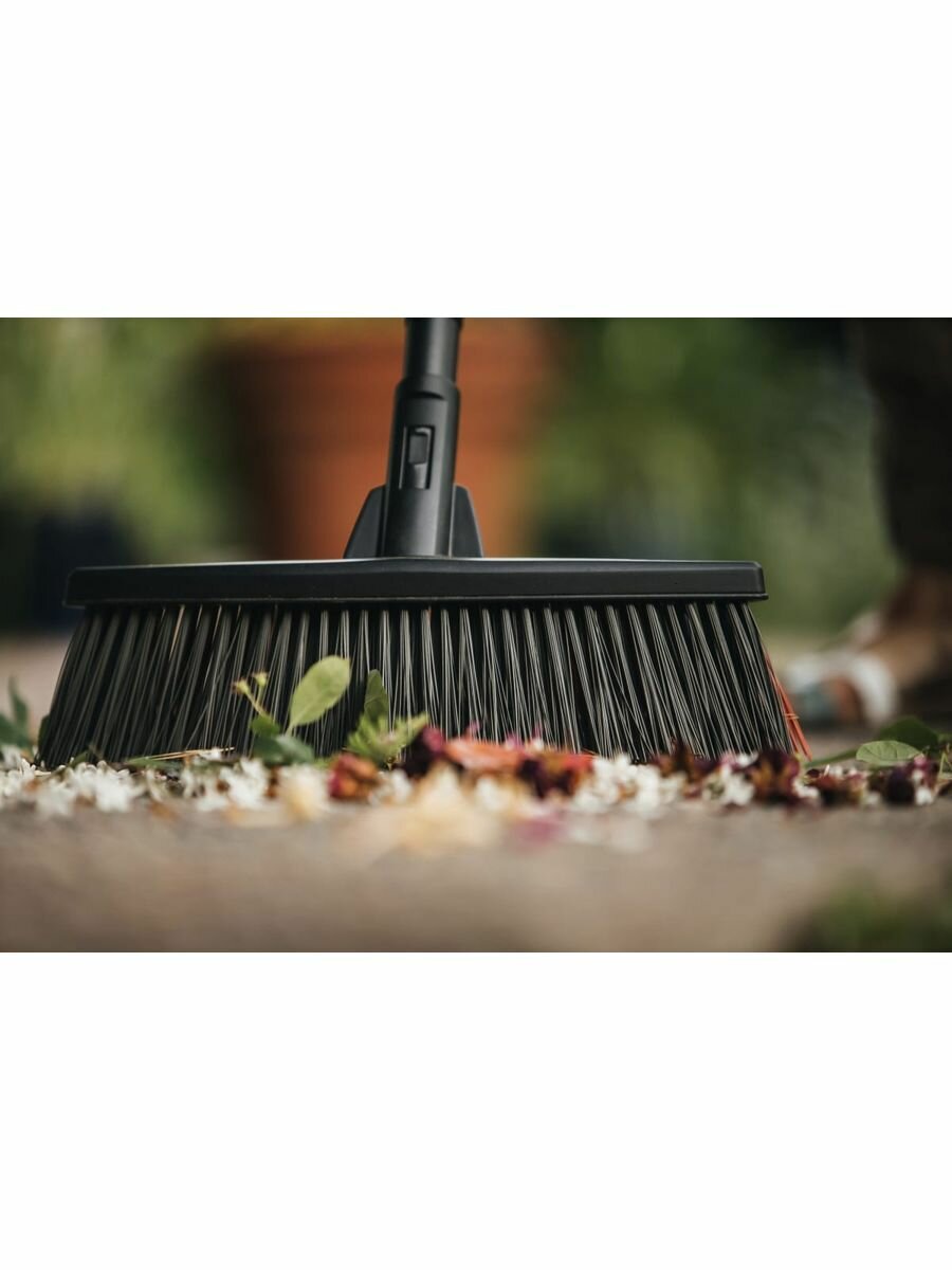 | Плюсы: | Возможность использовать как сменный инструмент с рукояткой Fiskars (вместе с граблями), достаточно удобно подметать, прочная щетина. |