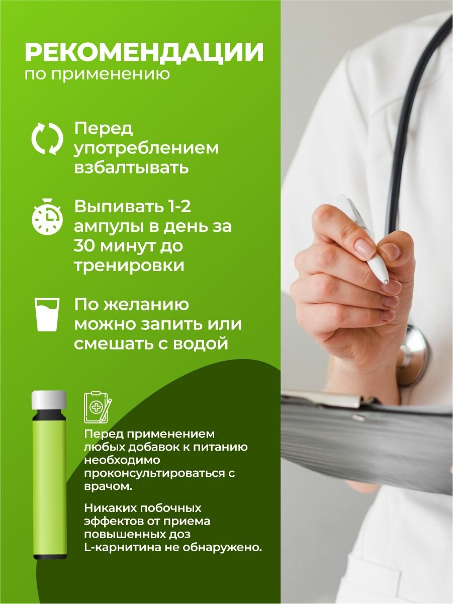 L-карнитин 3600 мг, 20 ампул по 25 мл, мохито, жиросжигатель для похудения мужчин и женщин, Л карнитин