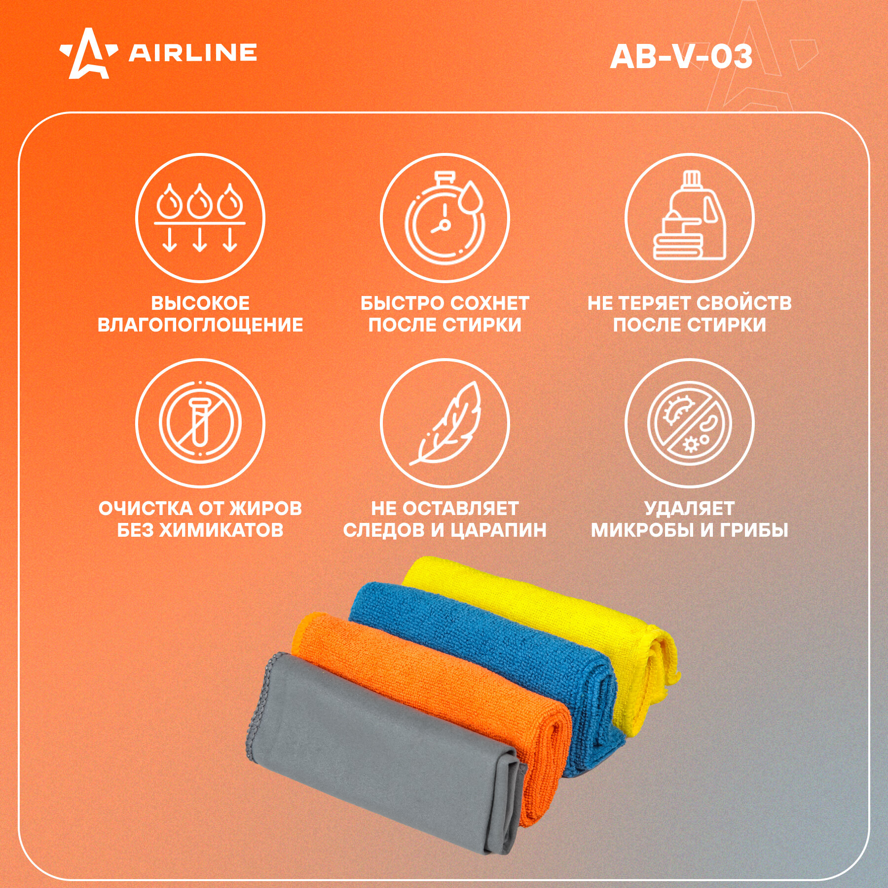 AIRLINE Салфетка универсальная (микрофибра) (30*30) к-т 4шт "AIRLINE" (АВ-V-03)