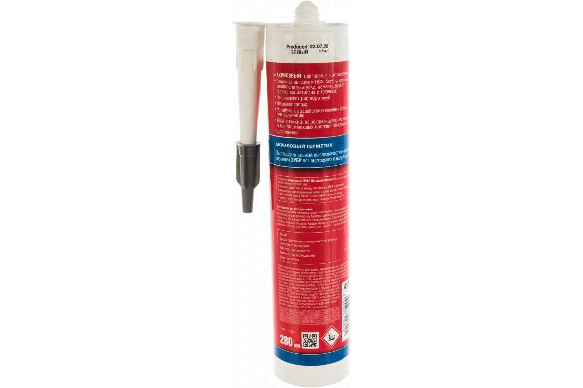 Герметик акриловый Зубр белый, универсальный, 280мл 41231-0 .