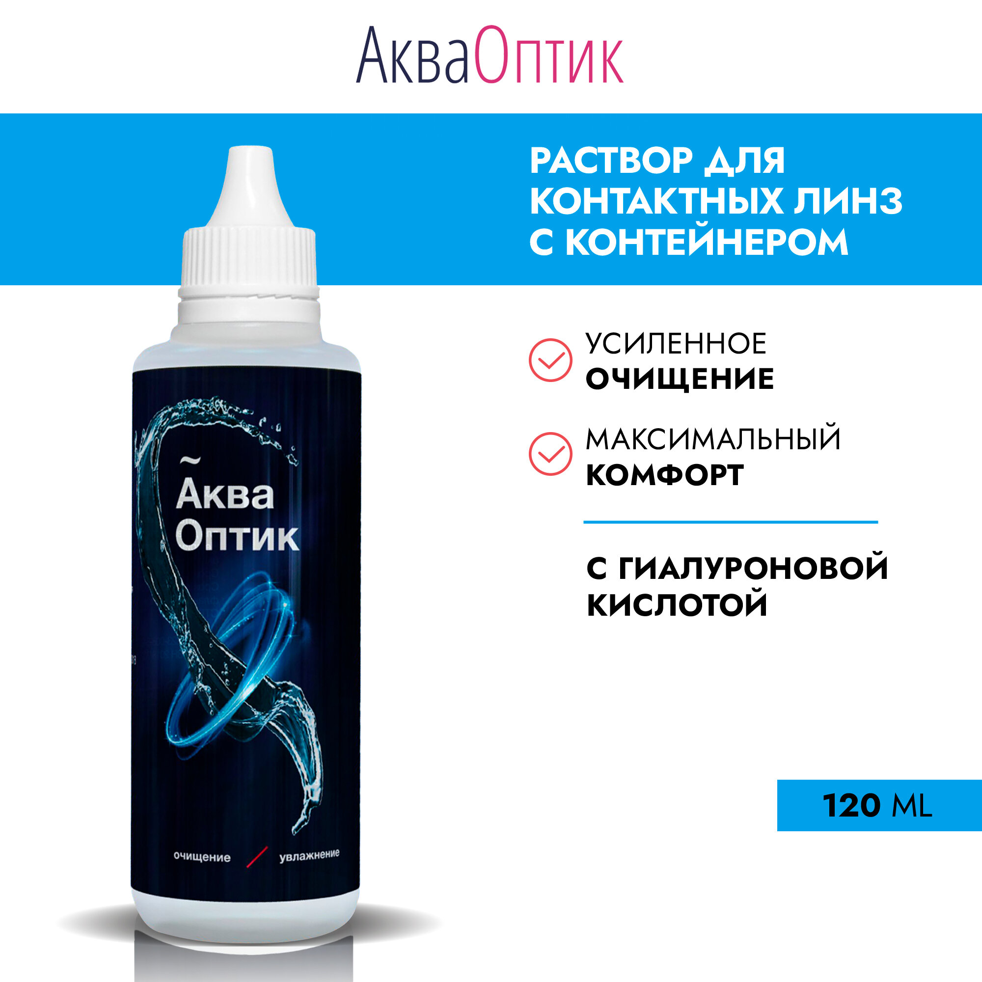 Раствор для контактных линз АкваОптик для ежедневного ухода, 120 мл (с контейнером для линз)