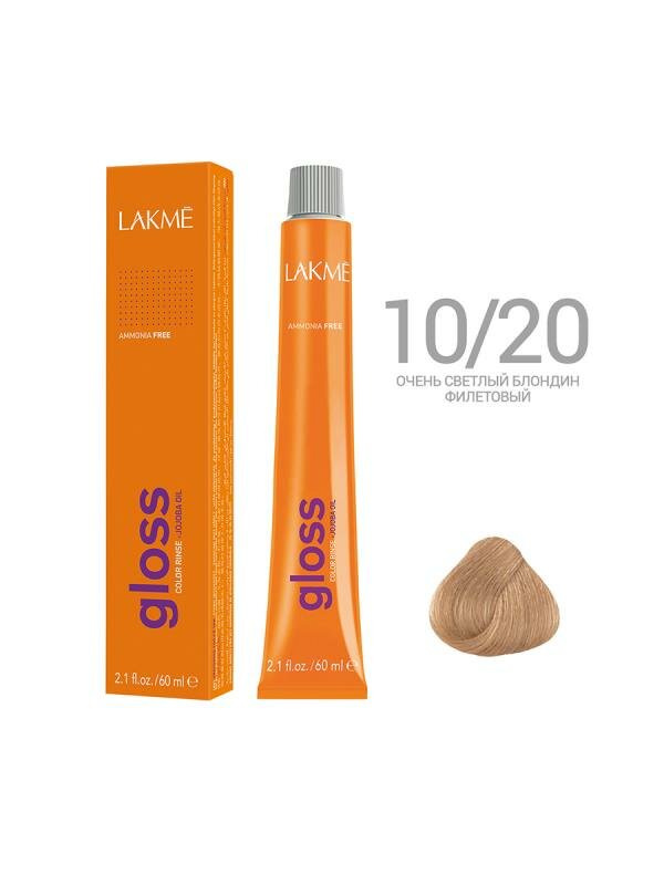 LAKMÉ, GLOSS, Крем-краска для волос тонирующая №10/20, Очень светлый блондин фиолетовый, 60 мл