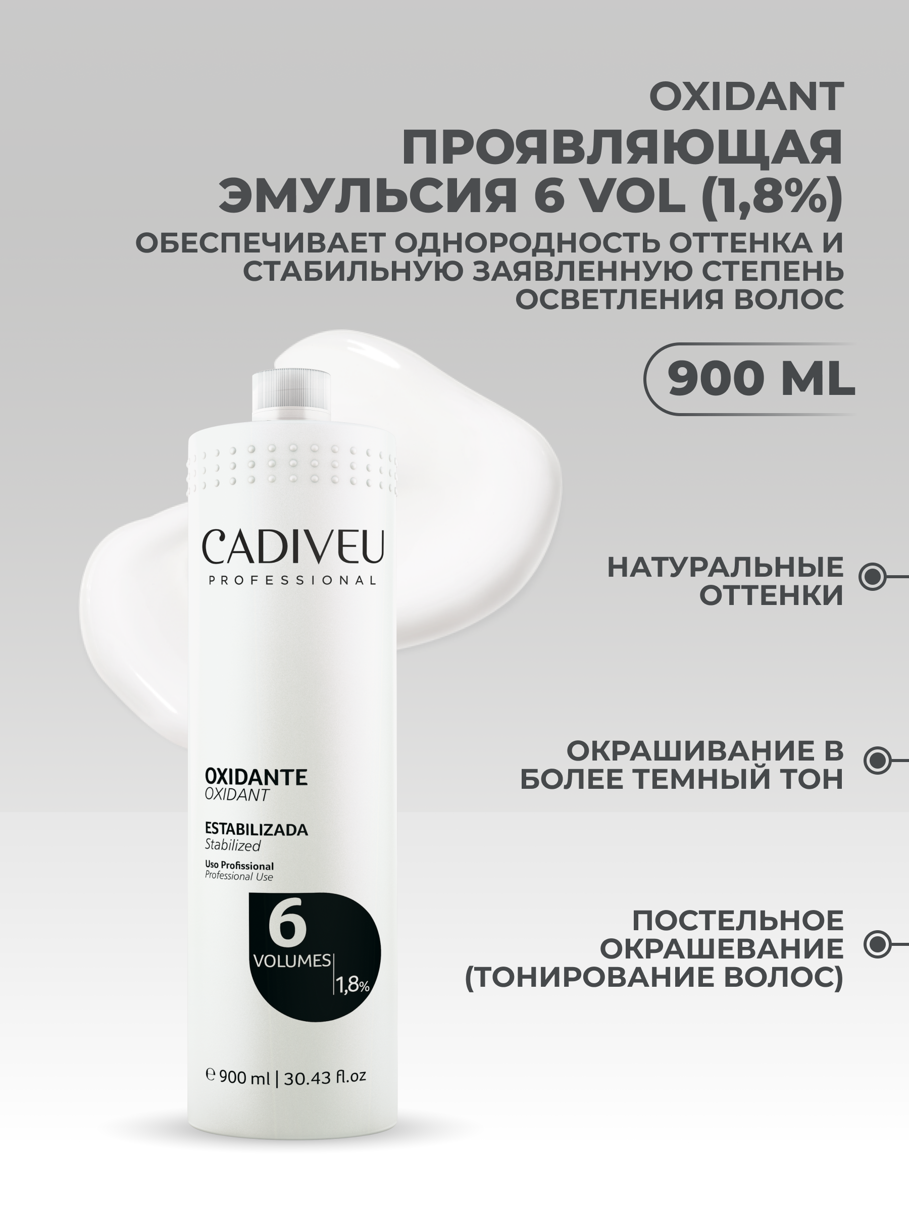 Купить Cadiveu Oxidant 6 VOL ( 1,8 %) Окисляющая эмульсия, 900 мл