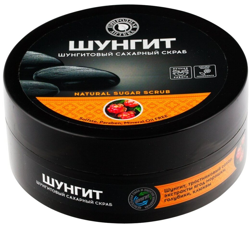 Шунгитовый серии "Природная аптека" Шунгит сахарный скраб для тела, 300г