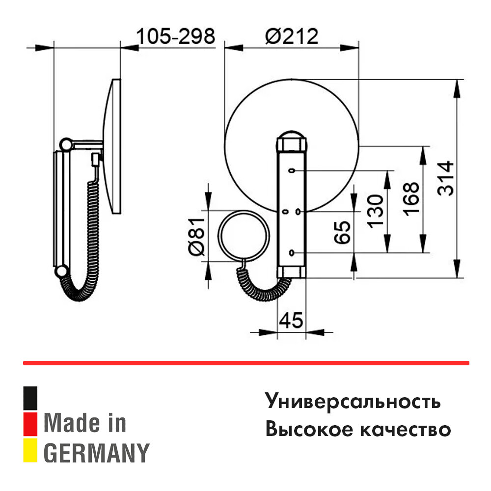 Зеркало косметическое Keuco iLook_move круглое, настенное, LED-подсветка, 21.2x21.2см, хром 17612 019000